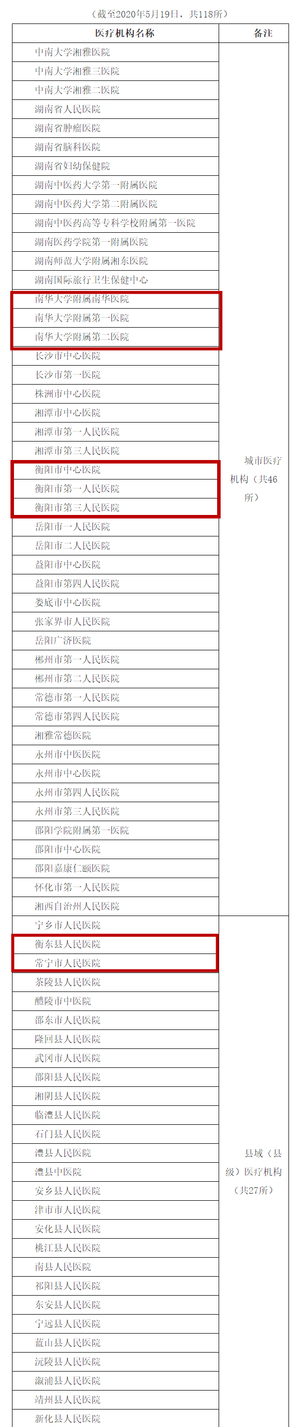 經(jīng)國家衛(wèi)生健康委臨床檢驗中心《新冠病毒核酸檢測信息平臺》查詢,湖南開展新冠病毒核酸檢測的醫(yī)療機構名單5月19日下午公布。其中,衡陽有9家醫(yī)療單位可開展新冠病毒核酸檢測,他們分別是南華大學附屬第一醫(yī)院、南華大學附屬第二醫(yī)院、南華大學附屬南華醫(yī)院、衡陽市中心醫(yī)院、衡陽市第一人民醫(yī)院、衡陽市第三人民醫(yī)院、衡東縣人民醫(yī)院、常寧市人民醫(yī)院、衡陽市疾病預防控制中心。具體名單如下: