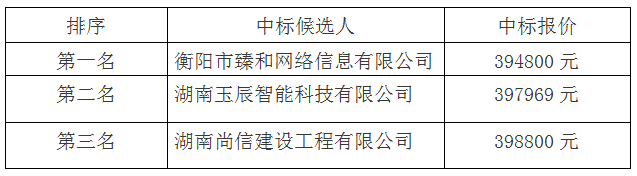 根據招標投標相關法律法規及招標文件的規定,衡拖棚戶區改造一期三網合一入戶工程于2020年9月28日在弘湘寫字樓4樓會議室舉行開標、評標會,本項目采用“低價中標法”,現將中標候選人名單公示如下: