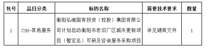 采購項目名稱:衡陽弘湘國有投資(控股)集團有限公司計劃啟動衡陽市老舊廠區城市更新項目(暫定名)可研及咨詢服務采購項目