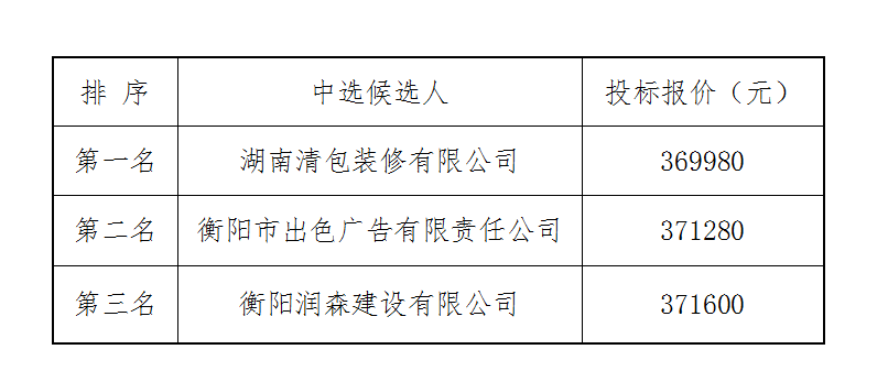 衡拖棚改(一期)掃尾零星工程施工單位比選中選候選人公示