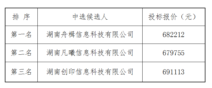 弘湘國投檔案室建設(shè)項(xiàng)目于2022年7月22日下午15時(shí)00分(北京時(shí)間)進(jìn)行了比選開標(biāo)、評標(biāo)活動(dòng),評標(biāo)委員會(huì)按照比選文件規(guī)定的評標(biāo)辦法及原則進(jìn)行評定,推薦中選候選人排名如下: