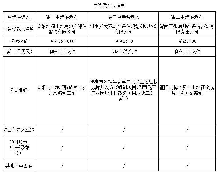 衡陽市植物園片區三宗土地征收成片開發方案編制項目咨詢服務比選中選候選人公示