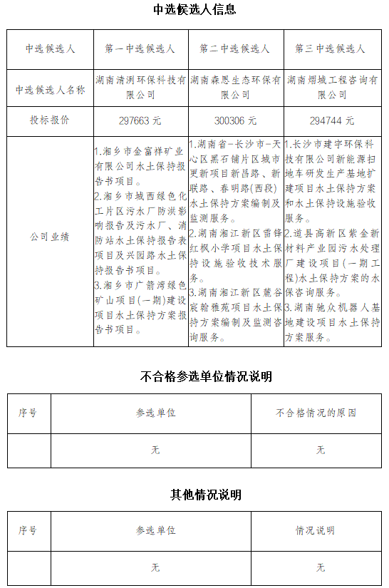 衡陽(國際)眼鏡小鎮(標準廠房A1區項目、10KV配電工程項目)水土保持咨詢服務內部比選中選候選人公示