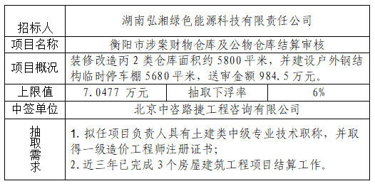 招標人:湖南弘湘綠色能源科技有限責任公司